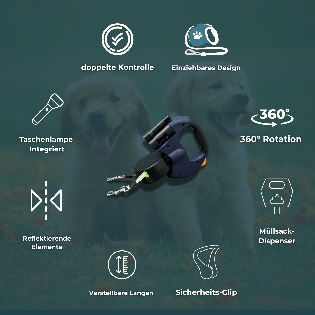 Paws2Go bietet dir eine innovative Lösung für all diese Probleme. Diese doppelte einziehbare Haustierleine ist nicht nur funktional, sondern auch unglaublich praktisch.