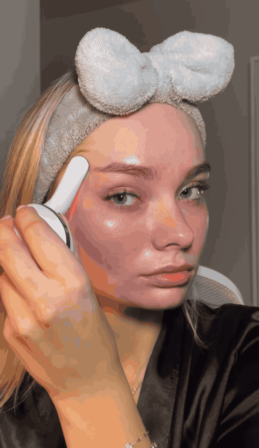 Reinige dein Gesicht und trage ein Serum oder Gel auf. Schalte PulseAura ein und wähle den gewünschten Modus. Führe das Gerät sanft in aufwärts gerichteten Bewegungen über dein Gesicht und den Hals – besonders an Kinn und Wangen. Verbringe ca. 10 Minuten täglich damit. Reinige das Gerät nach der Anwendung einfach mit einem weichen Tuch.